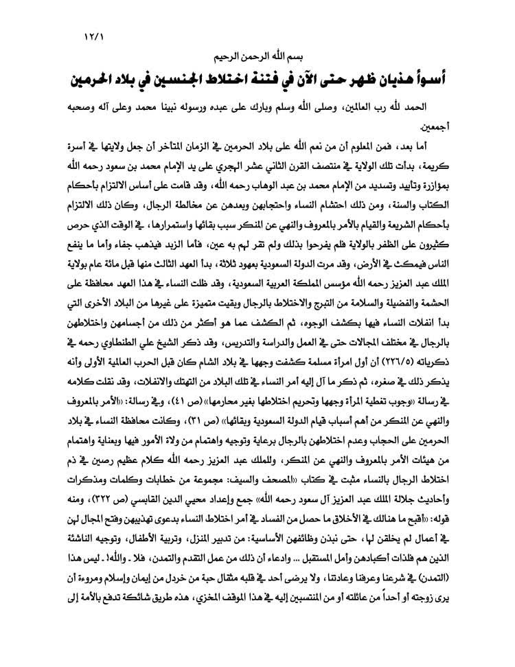 والمفتي العام للملكه آال الشيخ يقول إن لإختلاط جريمة :